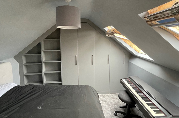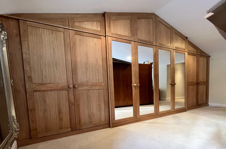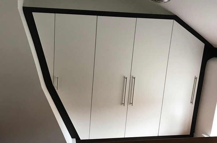 Maximize every inch of your space with our bespoke fitted angled wardrobes. Designed to seamlessly fit into sloped ceilings, alcoves, and awkward corners, our wardrobes combine style and functionality for a truly custom storage solution. Choose from a range of finishes, interiors, and accessories to create a wardrobe that perfectly suits your needs and complements your home.